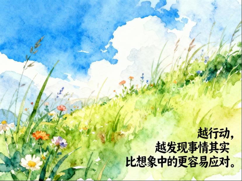 焦虑让人停下,恐惧会让人逃跑,但行动能逆转这一切。害怕考试、面试、演讲,就开始准备;害怕失败,就迈出小小一步。越行动,越发现事情其实比想象中的更容易应对。